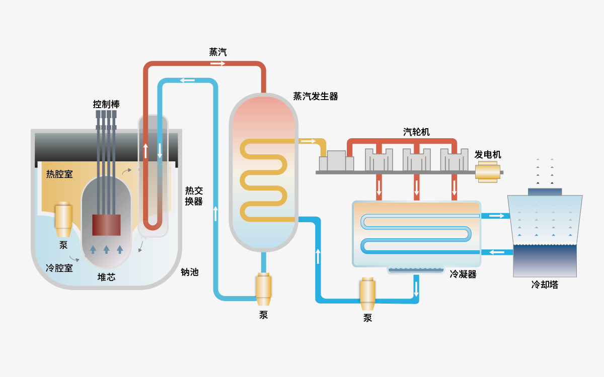 快中子堆,简称快堆,是由快中子引起链式裂变反应并可实现核燃料增殖的反应堆。快堆在运行中既消耗易裂变材料,又生产新的易裂变材料,而且所生产的易裂变材料多于所消耗的,因此能实现核易裂变材料的增殖。目前,世界商业运行的核电厂堆型多为非增殖堆,对铀资源的利用率较低。而快堆可将铀资源利用率提高到60%-70%。中国实验快堆已于2011年并网发电,标志着我国成为世界第八个拥有快堆技术的国家。目前,我国已着手研发百万千瓦级大型快堆核电厂技术。